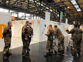 Helfer der DLRG haben mit den Architekten minutiös geplant, wie Stühle in corona-entsprechendem Abstand prozesskonform platziert, Messestellwände aufgebaut, Bürotische und Regale aufgestellt werden müssen. „Unsere Mitarbeiter haben Großes geleistet, innerhalb weniger Tage sind an den sechs verschiedenen Impfzentren-Standorten Räume und Gänge entstanden, die es ermöglichen, dass Tausende Berlinerinnen und Berliner sich nach gängigem Sicherheits- und Hygienekonzept impfen lassen können. Das ist ein großer logistischer Aufwand, den wir bewältigt haben", so Landesverbandsvizepräsident der DLRG-Berlin und Leiter Einsatz Udo Rosentreter.