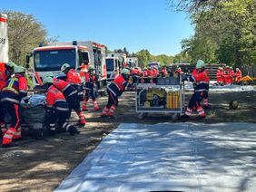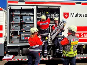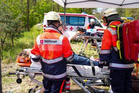 „Diese Übung ist wichtig, damit wir das Zusammenspiel zwischen den verschiedenen Akteuren wie Feuerwehr, Polizei und allen anderen Hilfsorganisationen tatsächlich unter Realbedingungen trainieren,“ erklärt Lucas Stachetzki, Referent Katastrophenschutz. Zunächst muss die Einsatzleitung vor Ort klären, wo die Verletzten versorgt werden: Es geht um Erstversorgung, Patientenablage, Behandlungsplätze und schließlich Transport in die umliegendne Krankenhäuser. Die Malteser sind an diesem Übungstag – zusammen mit den Johannitern – zuständig für zwei „BHP 25“, also Behandlungsplätze in denen pro Stunde 25 Verletzte versorgt werden können. Außerdem stellen sie einen „PTZ 10“, d.h. einen Patiententransportzug, mit dem zeitgleich zehn Patientinnen und Patienten in Krankenhäuser transportiert werden können. Eine weitere Einsatzgruppe der Malteser ist für die Psychosoziale Notfallversorgung und Krisenintervention zuständig.