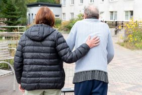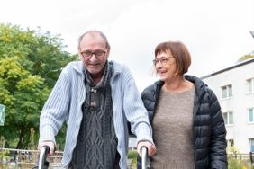 Christian B. hat sich jetzt eine Wolljacke übergezogen, er und Heidi wollen noch spazieren gehen. Das Laufen fällt ihm auch am Rollator schwer, aber er schafft ein paar Schritte. Heidelore Gliech stützt ihn, ihre Hand streicht über seinen Rücken. Er lächelt. Es ist Mittwoch und Christian B. ist heute nicht allein auf seinem Weg.