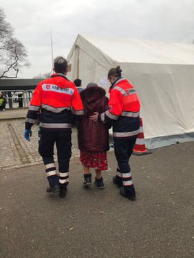 Viele Geflüchtete aus der Ukraine erreichen Deutschland über Berlin. In der Hauptstadt sind die Malteser am Zentralen Omnibusbahnhof und im Ankunftszentrum am alten Flughafen Tegel im Einsatz, um den ankommenden Kriegsgeflüchteten zu helfen.