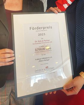 Mit großer Freude und Dankbarkeit hat das Team von Mary's Refuge eine Förderung über 3750 Euro erhalten. Die stiftete die Sozietät Dr. Eick & Partner mit Fokus auf frauenspezifische Integrationsprojekte. Diese Summe stammt aus dem diesjährigen Förderpreis der Sozietät, die damit soziales und ökologisches Engagement in der Region Erfurt fördert.