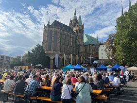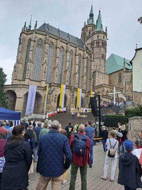 Im Rahmen der Bistumswallfahrt wurde auch der Pilgerstab vom Bonifatiuswerk der deutschen Katholiken an die Malteser Erfurt überreicht. Im Rahmen des Heiligen Jahres 2025, das unter dem Leitwort „Pilger der Hoffnung“ steht, wandert dieser handgefertigte Stab durch das Bistum Erfurt: Der Pilgerstab soll an vielen Orten präsent sein und die Menschen, die ihm begegnen, dazu einladen, innezuhalten und darüber nachzudenken, was es heute bedeutet, ein „Pilger der Hoffnung“ zu sein. Der Stab wird Teil der Malteser Rom-Wallfahrt von 27. September bis 4. Oktober sein.