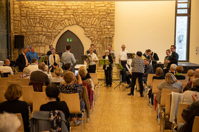 Dabei waren mehr als 80 Besucher gekommen, um den evangelischen Posaunendienst aus Erfurt, sowohl mit traditionellen Melodien als auch mit modernen Liedern, zu hören. Ebenso spielten an diesem Abend ein Streichquartett mit einer Komposition von Mozart sowie die Swing- und Jazzband „Chairman“ für den guten Zweck. Insgesamt wurden Spenden in Höhe von 321,- € eingenommen.