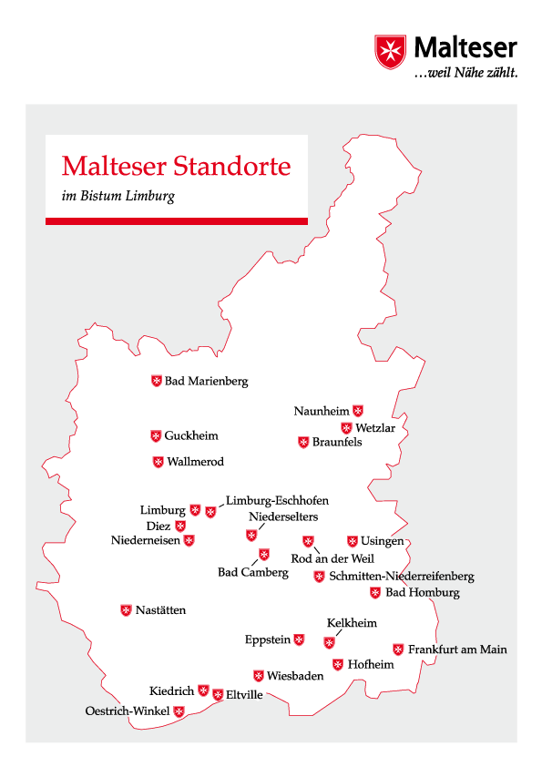 Im Bistum Limburg gibt es 11 ehrenamtlich geführte Malteser Einheiten auf Stadt-, Orts- und Kreisebene sowie 19 hauptamtliche Dienststellen.