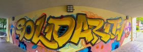 Unter dem Motto „Colour the Block“ wurde an diesem Tag mit tatkräftiger Unterstützung der kleinen und großen Gäste ein Graffiti in den Hausdurchgang des Stübchen Süd gesprüht. Iman und Michel hatten das Motiv vorab entworfen und mit der Wohnungsbaugesellschaft Magdeburg mbH „Wobau“ abgestimmt. Am Sonntag konnten dann alle Interessierten lernen, wie ein Graffiti entsteht und sich auch selbst ausprobieren. „Wir fertigten gemeinsam mit den Kindern Schablonen an, deren Motive später mit an die Wand neben das Graffiti gesprüht wurden“, erzählt Tim Niewerth, Ehrenamtskoordinator im Stübchen Süd. Die Kleinen konnten sich außerdem auf einer Hüpfburg austoben, die von der Wobau gestellt wurde. Ab 16 Uhr fand ein Breakdance-Auftritt statt, dem sich spontan die jüngsten Gäste anschlossen und so von Maro verschiedene Tanzbewegungen lernten. „Wir waren begeistert, dass so viele verschiedene Menschen aus der Nachbarschaft teilgenommen, mitangepackt und sich wirklich über das Graffiti an der Wand gefreut haben“, sagt Jamina Lauwigi, Ehrenamtskoordinatorin im Stübchen Süd.