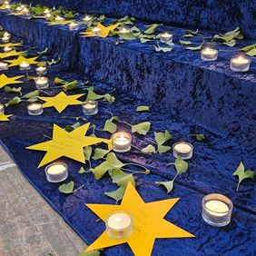 Gundula Heyn sowie ehrenamtliche Hospizbegleiter haben zur traditionellen Gedenkfeier am Vorabend des Hospiztages in Zerbst eingeladen. Gemeinsam mit Mitarbeitenden des AWO-Seniorenzentrums „Am Frauentor“ haben sie der Menschen gedacht, die in diesem Jahr verstorben sind. Pfarrer Lutz-Michael Sylvester erinnerte: „Unsere Zeit hier auf Erden ist begrenzt. Das macht sie so kostbar. Wer das wahrnimmt, lebt anders, dankbarer.“ Mancher habe durch den Verlust lieber Menschen die eigene Ohnmacht gespürt. Was aber bleibe, sei die Liebe: „Liebe lebt fort über alle endlichen Grenzen hinweg. Die Liebe zu den Verstorbenen, die weiterlebt in den Erinnerungen, die wir in uns tragen.“ Als Erinnerung wurden Kerzen angezündet und Sterne mit Namen auf einem blauen Band der Erinnerung ausgelegt.