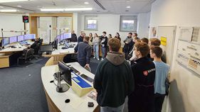 Nur diesmal nicht. Der Wohnhausbrand war nämlich ein vorbereitetes Szenario für die Jugendlichen. Und Markus war eingeweiht. Die Sorge einiger, sich im Stress nicht mehr an die W-Fragen zu erinnern, war übrigens unbegründet. Markus und sein Team in der integrierten Leitstelle fragen alles ab, was sie wissen müssen. Zuerst, wo der Notfall passiert ist. Schon während des Gesprächs alarmieren sie die Rettungsmittel per Mausklick. 24 Stunden am Tag, 365 Tage im Jahr.