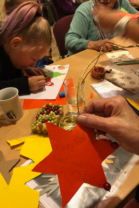 In diesem Jahr beteiligte sich der Ambulante Hospiz -und Trauerbegleitungsdienst in Zerbst erstmalig an der bundesweiten Malteser Nikolausaktion. Am 6. Dezember 2019 öffnete sich die Bastelstube für Kinder der Kinder-Tafel Zerbst sowie Bewohnerinnen und Bewohner des AWO Seniorenzentrums „Am Frauentor“, um gemeinsam Advents- und Weihnachtsschmuck zu basteln. Ideengeberin war die ehrenamtliche Trauerbegleiterin Gisela Achilles, die auch die Bastelvorlagen lieferte. Die Kosten für das Bastelmaterial sponserte das Sanitätshaus Puppe. Trotz ungemütlichen Regenwetters machten sich fünf Heimbewohnerinnen und Bewohner gemeinsam mit zwei Ergotherapeuten auf den Weg in die Malteser Dienststelle und brachten selbstgebackene Plätzchen mit. Auch Kinder mit oder ohne Eltern kamen. Dann ging es ans Werk und es wurden Sterne, Karten, Korkenengel oder Weihnachtsmänner ausgeschnitten, geklebt und gefaltet.
