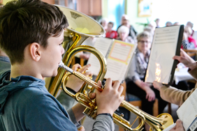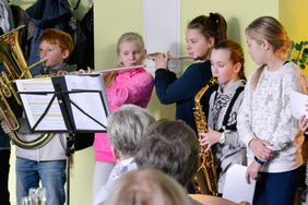 Die Schülerinnen und Schüler der 5. und 6. Klasse musizierten auch auf verschiedenen Instrumenten, die sie teilweise erst seit drei Monaten üben. Der Auftritt war gelungen und soll im nächsten Jahr auch zu anderen Anlässen wiederholt werden.