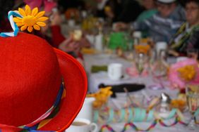 "Hut ab!" hieß es auch heute beim Anblick der Kopfbedeckungen und Kostüme in der Seniorenwohnanlage "Pegasus". Voller Stolz präsentierten die Seniorinnen am so genannten Faschingsdienstag, dem letzten närrischen Feiertag vor Aschermittwoch, ihre selbstgebastelten Hüte und Kappen auf der Faschingsfeier des Malteser Service Wohnen. Es wurde noch einmal ordentlich geschlemmt und gesungen, bevor morgen die Narrenzeit wieder endet und die Fastenzeit beginnt.