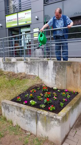 Auch das Malteser Stübchen Nord beteiligt sich an der bundesweiten Aktion mit einem farbenfroh bepflanzten Hochbeet für die Anwohner am Seeufer 9 in Magdeburg.