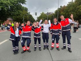 Aufgrund der Ausdehnung der Strecke auf verschiedene Stadtteile Münsters, wurden an verschiedenen Stellen entlang der Strecke vier Medical Points und fünf mobile Unfallhilfstellen eingerichtet. Zum Transport von Patientinnen und Patienten aus den Medical Points und zur Versorgung von Notfällen auf der Strecke wurden insgesamt acht zusätzliche Rettungswagen und drei Notarzteinsatzfahrzeuge eingesetzt. Wilbrenner zog am Ende dieses Jubiläumsmarathons eine positive Bilanz. Mit dem Verlauf des Einsatzes und der Leistung seiner vorwiegend ehrenamtlichen Einsatzkräfte von den vier Hilfsorganisationen ist er sehr zufrieden. Auch die Zusammenarbeit mit dem Rettungsdienst und der Feuerwehr, dem Veranstalter und der Polizei lobte er am Ende eines langen Tages ausdrücklich. „Es ist jedes Mal eine Herausforderung, in dem weiträumigen Einsatzgebiet für die notfallmedizinische Versorgung der Aktiven, aber auch der Zuschauerinnen und Zuschauer zu sorgen. Zugleich bewährt sich die langjährige Zusammenarbeit zwischen Feuerwehr und Hilfsorganisationen bei solchen Großveranstaltungen“. In gut drei Wochen geht es mit dem Giro schon wieder weiter mit dieser Zusammenarbeit.