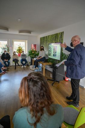 Einen spannenden Fachvortrag zum Thema Energieeinsparung steuerte der eingeladene Achim Hertzke vom BUND NRW bei und sensibilisierte die 15 Teilnehmenden in ihrem Ressourcenverbrauch. In einem unterhaltsamen wie informativen Nachhaltigkeitsquiz wurde in ganzer Runde geraten und gestaunt, über die teilweise unwirklichen Zahlen: So produzieren wir jährlich rund 400 Millionen Tonnen Kunststoff. Tendenz steigend.