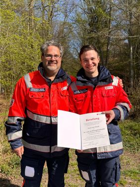 Am Samstag, 19.04.2025 übereichte ihm Rüdiger Herb, Leiter der Staffel und stellvertretender Kreisbeauftragter, die Berufungsurkunde im Rahmen des Rettungshunde-Trainings. "Tom Wojcik ist Rettungshundler voller Begeisterung, hat ein sehr, sehr gutes organisatorisches Geschick, viele Ideen und wird neue Impulse geben. Ich freue mich auf die vertrauensvolle Zusammenarbeit", so Rüdiger Herb. Tom Wojcik freut sich sehr über die Berufung. "Ich bin mir bewusst, was es bedeutet, in die Leitung einer Rettungshundestaffel einzutreten. Zum ohnehin schon großen zeitlichen Engagement kommt nun nochmal eine große Schippe oben drauf", so Wojcik um gleich anzuschließen: "doch das mache ich gerne, denn: Es ist ein einfach ein tolles Team!"