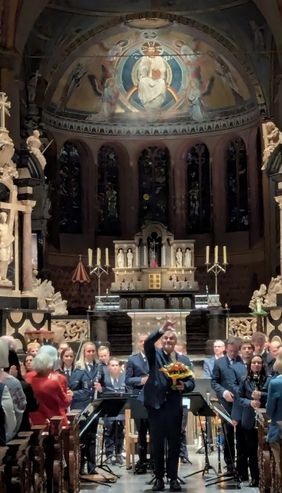 Rund 200 Besucherinnen und Besucher kamen am Freitagabend in das Bonner Münster, um das Benefizkonzert des Landespolizeiorchesters NRW zugunsten des Malteser Herzenswunschkrankenwagens und der Stiftung Bonner Münster zu erleben.