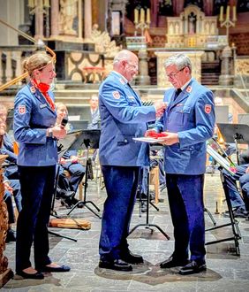 Im Anschluss an das Konzert wurde Gerd Mainzer für sein langjähriges Engagement geehrt: Diözesanoberin Catharina Gräfin von Spee und der stellvertretende Diözesanleiter Prof. Dr. Andreas Archut verliehen ihm die Malteser Verdienstplakette in Bronze, eine hohe Auszeichnung des Malteserordens.