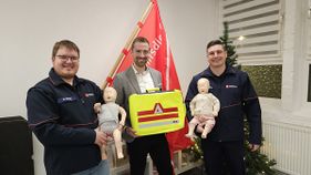 Die Übergabe fand im Rahmen des Dienstabends zum Thema „Kindernotfälle im Sanitätsdienst“ statt. Hier wurden typische Notfälle wie Verschlucken, Fremdkörper in den Atemwegen, Verbrennungen und Hitzschlag besprochen und praxisnah trainiert.