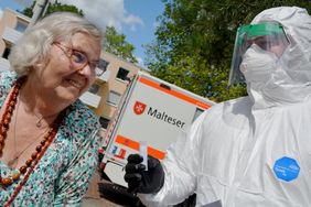 Da schaute Edeltraud Bischoff etwa skeptisch, doch der nette junge Malteser konnte sie beruhigen: „Sie müssen nur mit etwas Wasser gurgeln und es dann in einen kleinen Plastikbehälter spucken, das ist alles.“ Nicht zu viel verlangt für die alte Dame und ihre Mitbewohner des Heimes am Schwarzen Berg in Braunschweig. Irritierend nur, dass Edeltraud Bischoff dem hilfsbereiten Malteser kaum in die Augen blicken konnte: Von Kopf bis Fuß waren die ehrenamtlichen Helferinnen und Helfer in einen weißen Overall gekleidet, das Gesicht mit zweifacher Schutzmaske verkleidet. Aber wenn der Blickkontakt schwierig ist, hilft Freundlichkeit weiter: Mit viel Einfühlungsvermögen halfen die Malteser samt Mitarbeiterinnen und Mitarbeitern des Heimes den betagten Herrschaften durch den aufregenden Tag.