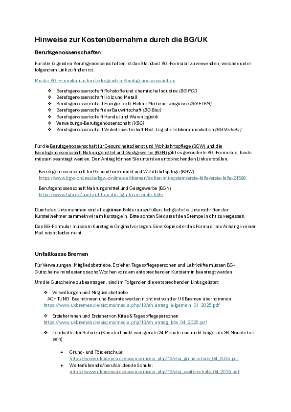 Erste-Hilfe Kurse (Aus- und Fortbildung) in Bremen und Bremerhaven