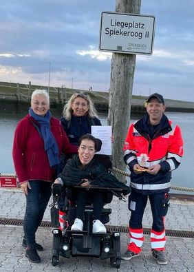 Dort haben wir die junge Patientin und ihre Mutter mitsamt dem Gepäck eingeladen. Gut gelaunt und voller Vorfreude ging es in Richtung Nordsee. Auf der Hälfte der Strecke legten wir eine Pause ein und wurden von der Mutter der Patientin mit einem Vesper überrascht. Frisch gestärkt ging es dann weiter nach Neuharlingersiel. Am Ziel angekommen konnten wir noch den Hafen erkunden, bevor die Fähre anlegte. Glücklich, aber müde gingen die Patientin und ihre Mutter mit der Hospizbegleiterin an Bord und freuten sich auf die Überfahrt.
