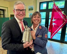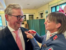 Und mit Michael Dreier begrüßte Friemuth einen Begleiter der Malteserarbeit von Beginn seiner Amtszeit an. Als Dreier im Juni 2014 seinen Dienst im Rathaus antrat, hatte er schnell Besuch aus der Paderborner Maltesergliederung. Ihnen sagte Dreier seine Mitarbeit zu. In seiner Funktion als Kreisbeauftragter habe Dreier immer Brücken gebaut, lobte Friemuth. Das habe sich zwischen Politik und Ehrenamt, zwischen Verwaltung und gelebter Nächstenliebe bewegt. „Du hattest nie Berührungsängste, sondern immer offene Ohren, offene Türen und auch offene Arme“, freute sich die Stadtbeauftragte über eine so gute Zusammenarbeit. Für sein Engagement, seinen Einsatz, besonders auch rund um die Hilfsaktionen während des Beginns des Ukraine Krieges, zeichnete Steffi Friemuth Dreier mit der Verdienstplakette in Silber der Deutschen Assoziation des Malteser Hospital- und Ritterordens aus. Das sei durch sein engagiertes Ehrenamt ehrlich verdient.