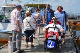 Daniel ist übrigens nicht das leibliche Kind der Schulzes, sondern ein Pflegekind, das sie vor fast 30 Jahren aufgenommen haben – zusätzlich zu ihren leiblichen Kindern, von denen eines ebenfalls behindert ist. „Das macht für mich aber keinen Unterschied“, stellt Vater Jörn klar, „ich betrachte ihn als meinen Sohn.“ So stellen die Schulzes denn auch die Wünsche Daniels in den Mittelpunkt dieses Tages. Seine Kapitänsmütze macht ihn zum Chef und der Kapitän möchte nach der Ankunft in Steinhude etwas trinken und wieder „Dreierlei Fisch“ essen – wie beim letzten Mal. Im Sommer vergangenen Jahres waren die Schulzes mit Daniel schon einmal in Steinhude, was ihm gut gefallen hat. Einen solchen Tag wollten sie ihm jetzt noch einmal schenken. „Den schweren Elektro-Rollstuhl hätte ich aber nicht in meinen Kofferraum gebracht“, erklärt Vater Jörn. Im Internet stieß seine Frau dann auf den Herzenswunsch-Krankenwagen der Malteser – die das Transportproblem nun professionell lösten.