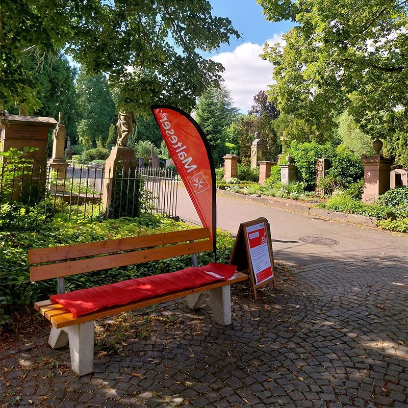 Die Trauerbank auf dem Alten Friedhof ist ein offenes Gesprächsangebot des Malteser Hospizzentrums Darmstadt/ Südhessen für Menschen in Trauer sowie für Menschen, die trauernde Menschen begleiten. Ehrenamtliche Trauerbegleitende sind für Sie da, und zwar in der Nähe des Haupteingangs des Alten Friedhofs (Herdweg 105, 64285 Darmstadt) jeweils am 2. Samstag im Monat von 10.00 bis 12.00 Uhr: