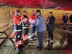 Auf dem Gelände des Citybeaches wurden nach Grußworten von Lars Rohwer, CDU MdB und Frank Anton, Landesvorsitzender Bündnis Deutschland ehrenamtliche Helferinnen und Helfer der Einsatzdienste Dresden durch Dr. Michael Katzsch, Amtsleiter Brand und Katastrophenschutzamt, für ihren Einsatz geehrt und weitere Einsatzkräfte offiziell in ihre Funktionen berufen. Anschließend wurde gemeinsam mit den Gästen und Ehrenamtlichen der Jahresabschluss gefeiert. Die Einsatzdienste Dresden können auf ein erfolgreiches Jahr zurückblicken. Im Jahresdurchschnitt haben die Helferinnen und Helfer 1,7 Veranstaltungen pro Tag ehrenamtlich medizinisch abgesichert. Die Segnung und Jahresabschlussfeier soll ein Dankeschön an alle ehrenamtlichen Einsatzkräften bei den Einsatzdiensten sein.