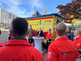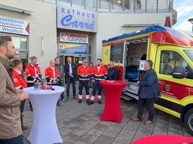 Bei der Schlüsselübergabe auf dem Rathausplatz in Schkeuditz war auch die Freude der Einsatzkräfte nicht zu übersehen: „Solche Tage sind immer etwas Besonderes. Es geht nicht nur um die Einsatzfahrzeuge an sich, sondern auch um die Anerkennung, die unserer Arbeit dadurch entgegengebracht wird“, findet Jörg Jany, Rettungswachenleiter in Schkeuditz und Taucha. „Wir freuen uns sehr, die alten Fahrzeuge zu ersetzen“, stimmt ihm Sven Binner, stellvertretender Bereichsleiter Rettungsdienst der Malteser zu. 4500 Einsätze hätten die 44 Mitarbeiter im Jahr 2022 zu bewältigen gehabt. Dank der Kofferaufbauten bieten die Wagen mehr Platz als ihre Vorgänger. Neuste Technik wie die elektrohydraulische Trage oder die beheizbare Tragenauflage versprechen mehr Komfort für Rettende und Gerettete und verbessern die Arbeitsbedingungen deutlich.