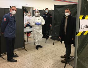 Im ehemaligen Konsum-Markt haben Bürgermeister Tobias Meier und Florian Wiehring, Referent Malteser Katastrophenschutz/Sanitätsdienst gemeinsam mit dem Leiter des Testzentrums Malte Reinwald den Start eingeläutet. Mit Unterstützung des THW Leipzig hat der Malteser Katastrophenschutzzug Taucha innerhalb kurzer Zeit den Aufbau am neuen Standort gestemmt. Mehr Platz als am alten Standort ermöglichen gute Laufwege und selbst bei großem Andrang Wartemöglichkeiten im Warmen. Bürgermeister Tobias Meier zum Testzentrum: „Was die Malteser auf die Beine gestellt haben hätten wir alleine in der Qualität nicht hinbekommen. Ein großer Dank hierfür.“