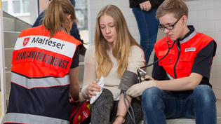 Die Schulsanitäter der Malteser kennen sich aus. Wenn etwas passiert, kümmern sie sich um die Erstversorgung des Patienten und rufen den Rettungsdienst, falls notwendig.