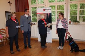 Die Ehrenamtlichen nahmen darüber hinaus an einer Helfergrundausbildung der Hilfsorganisation mit Erste-Hilfe-Kurs teil. Eine Präventions- und Demenzfortbildung folgen noch. Weitere Halter-Hunde-Paare befinden sich in Ausbildung. Die Helferinnen und Helfer werden sich in einem Poloshirt mit Namensschild, die Hunde mit einem hellblauen Malteser-Halstuch vorstellen.