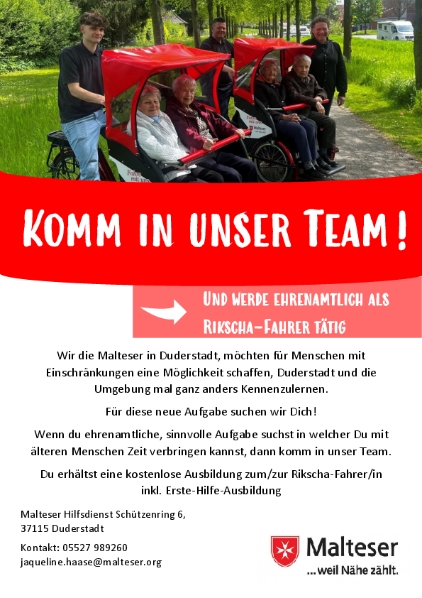 Stellenangebote und Ehrenamt bei den Maltesern in Duderstadt