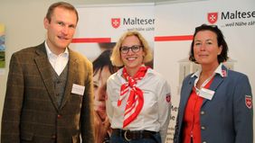 Zusammen mit Stephanie Gräfin von Waldstein, stellvertretende Diözesanoberin der Malteser und mit Jan Philipp Gerhartz, Malteser Diözesanreferent Demenzarbeit stellte die neue Leiterin des Café Malta in Wolfratshausen Cathrin Pötzl (in der Mitte) das Konzept und die Demenzphilosophie der Malteser vor (Foto Julia Krill/ Malteser).