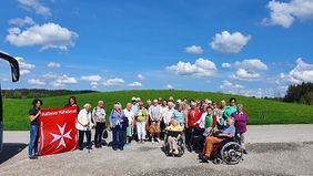 Garmisch-Partenkirchen. Eine gutgelaunte Gruppe hat sich am Dienstag bei schönstem Wetter mit den Maltesern aus Garmisch-Partenkirchen zu einem gemeinsamen Ausflug nach Sachsenkam aufgemacht. 37 Seniorinnen und Senioren, zum Teil mit Rollstuhl oder Rollator, nahmen an der begleiteten Fahrt teil. Organisiert wurde der Ausflug von der stellvertretenden Kreisgeschäftsführerin Petra Schinko und Claudia Eschelbach, Leiterin Soziale Dienste und Besuchsdienste der Malteser in Garmisch-Partenkirchen. „Endlich können wir mit unseren Senioren wieder einen Ausflug unternehmen“, sagt Petra Schinko und ergänzt: „Es ist unsere erste große Unternehmung seit Ende der strengen Corona Maßnahmen.“