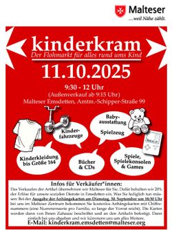 Am 29.03.2025 ist es wieder soweit und unser kinderkram findet bei uns im Malteser Zentrum statt.