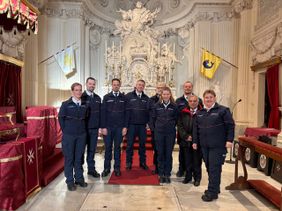 Eine ganz besondere Einladung erhielt unser Team bereits am Dienstag der Einsatzwoche: Sie durften gemeinsam mit den parallel im Dienst befindlichen Teams der Malteser aus Italien an der Heiligen Messe der Ordensregierung des Malteserordens in der Kirche Santa Maria della Famiglia im Vatikan teilnehmen. Diese Einladung erhalten nicht alle Einsatzteams, was sie zu einem ganz besonderen Ereignis macht.