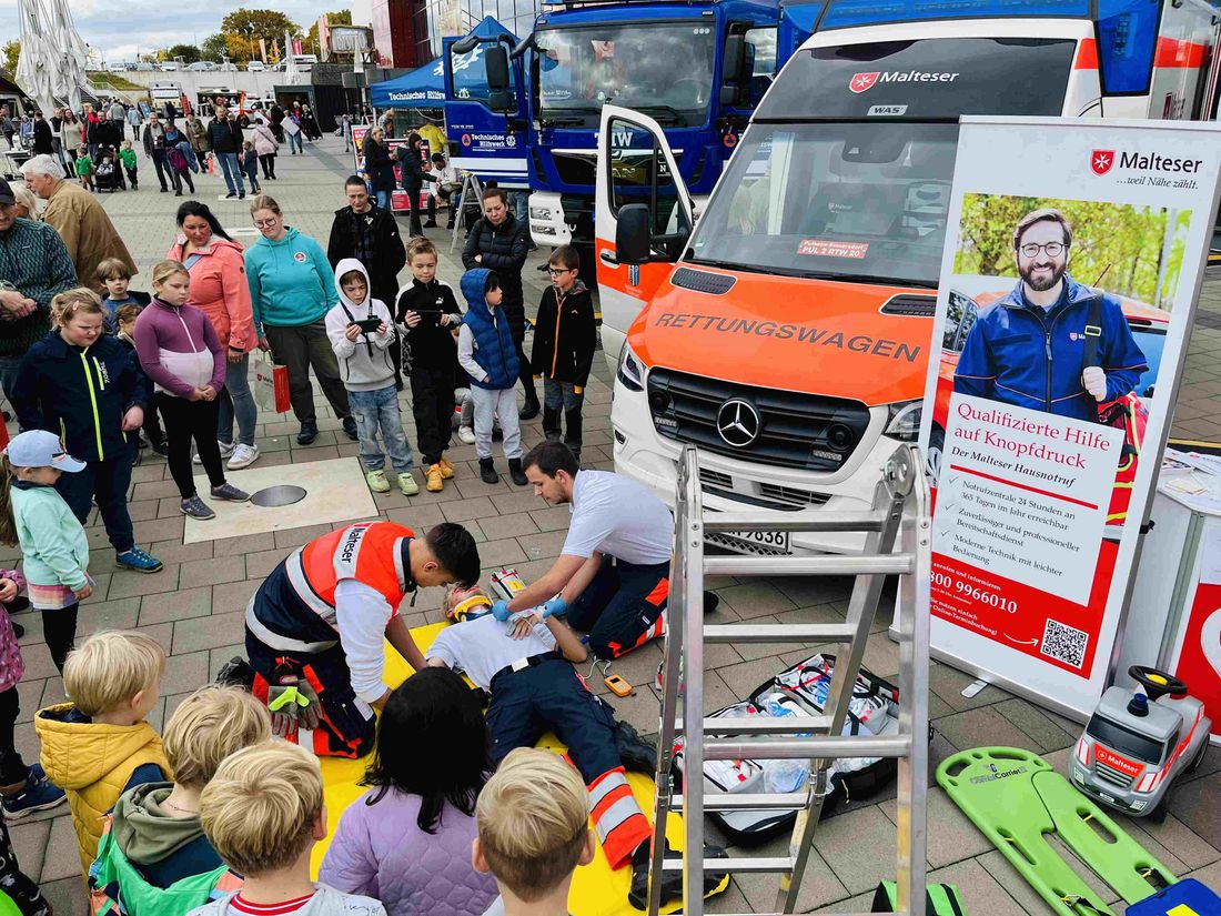 Als leistungsstarker Ansprechpartner für den Rettungsdienst, den Hausnotruf, den Schulbegleitdienst, die Erste-Hilfe-Ausbildung sowie bei Integrationsangeboten, Jugendarbeit, Katastrophenschutz und Sanitätsdienst zeigte der Malteser Hilfsdienst e.V. was die Hilfsorganisation im Bezirk Rheinland West ausmacht. Haupt- und ehrenamtliche Mitarbeitende und Engagierte aus dem Rhein-Erft-Kreis, dem Rhein-Kreis Neuss und der Stadt Köln stellten mit Mitarbeitenden der Bezirksgeschäftsstelle in Pulheim eine beeindruckende Präsentation ihres Könnens zusammen.