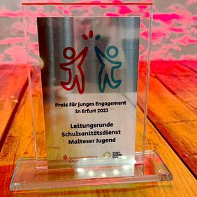 Die Leitungsrunde des Schulsanitätsdienstes der Malteser Jugend hat den mit 1500 Euro dotierten Gruppenpreis beim „Preis für junges Engagement“ des Stadtjugendrings Erfurt für ihr langjähriges Engagement in Empfang genommen. Die Laudatio hielt Oberbürgermeister Andreas Bausewein, der betonte, wie wichtig es ist, nicht nur im Bedarfsfall erste Hilfe zu leisten, sondern zugleich auch Mitschülern diese Aufgabe zu vermitteln.