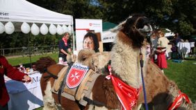 Therapielamas können Menschen mit beginnender Demenz helfen. Daher stellten die Malteser diese sanften Tiere beim Patrozinium vor. Foto: Malteser