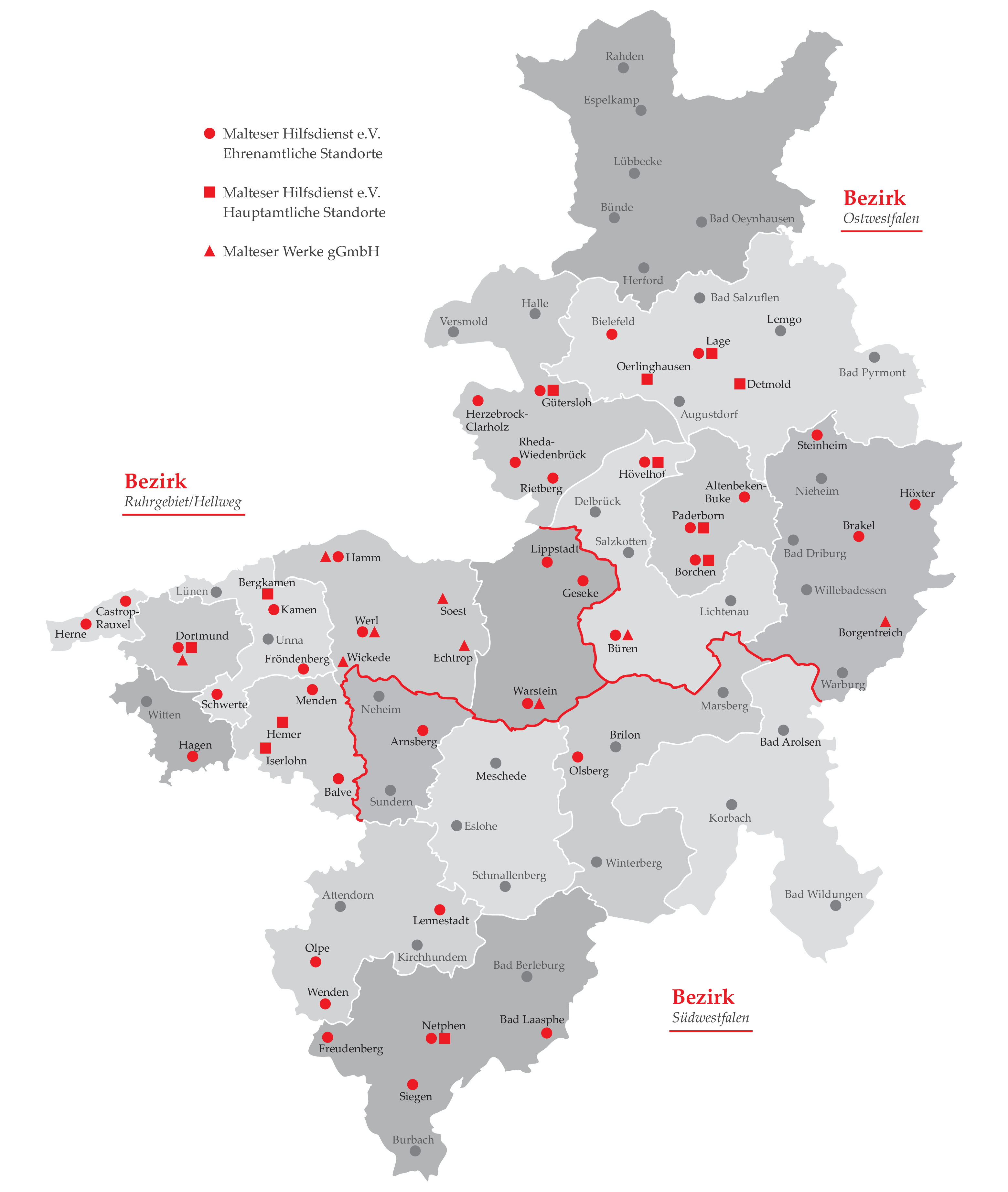 Von Minden bis Siegen, von Herne bis Höxter: Allein im Erzbistum Paderborn engagieren sich über 3.200 Malteser ehrenamtlich für Menschen in Notlagen. Mit über 1.500 Mitarbeitern sind die Malteser zugleich einer der großen Arbeitgeber im Gesundheits- und Sozialwesen.