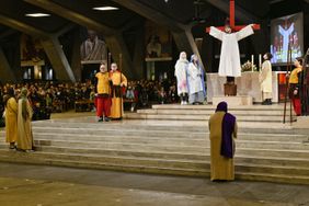 Pilgerinnen und Pilger der Paderborner Lourdeswallfahrt sind Darsteller bei dem Passionsspiel