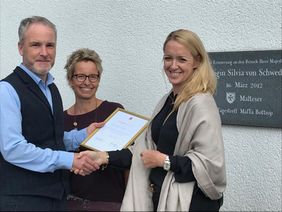 BU: Große Freude über die Rezertifizierung: Einrichtungsleiter Mario Schneeberg und Mitarbeiterin Petra Menke mit Petra Tegman/Silviahemmet (von li.)