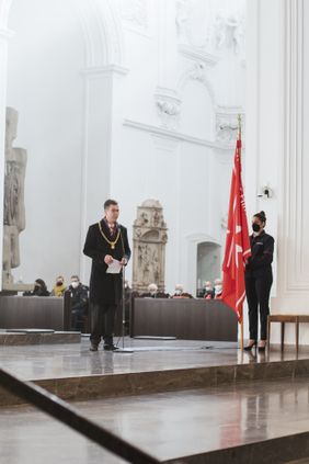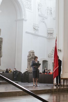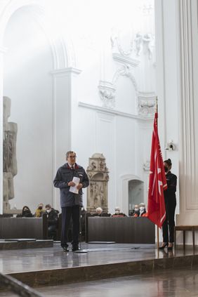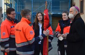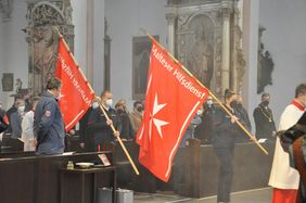 Bischof Jung freute sich, dass zu diesem Anlass die Helferinnen und Helfer „im Mittelpunkt stehen, die sonst beim Sanitätsdienst oder bei der Hospizbegleitung eher im Hintergrund agieren“. Der Bischof hatte daher extra die einzige Stelle in der Bibel als Lesungstext herausgesucht, in der die Insel Malta vorkommt. Er betonte in seiner Predigt, dass auch die Malteser bei ihrem Tun „Gefangene im Namen des Herrn“ seien, wenn sie sich – wie Paulus in der Apostelgeschichte – an Orte führen lassen, wo ihre Hilfe gebraucht wird. Und das könnten die Hochwassergebiete in Deutschland und der Welt genauso sein wie der Unfall, zu dem der Rettungsdienst gerufen werde oder das Bett eines Kranken. Jeder Mensch lerne im Helfen, „was Menschlichkeit heißt und wie man sich dem anderen als Nächster oder Nächste erweisen kann“, so der Bischof.