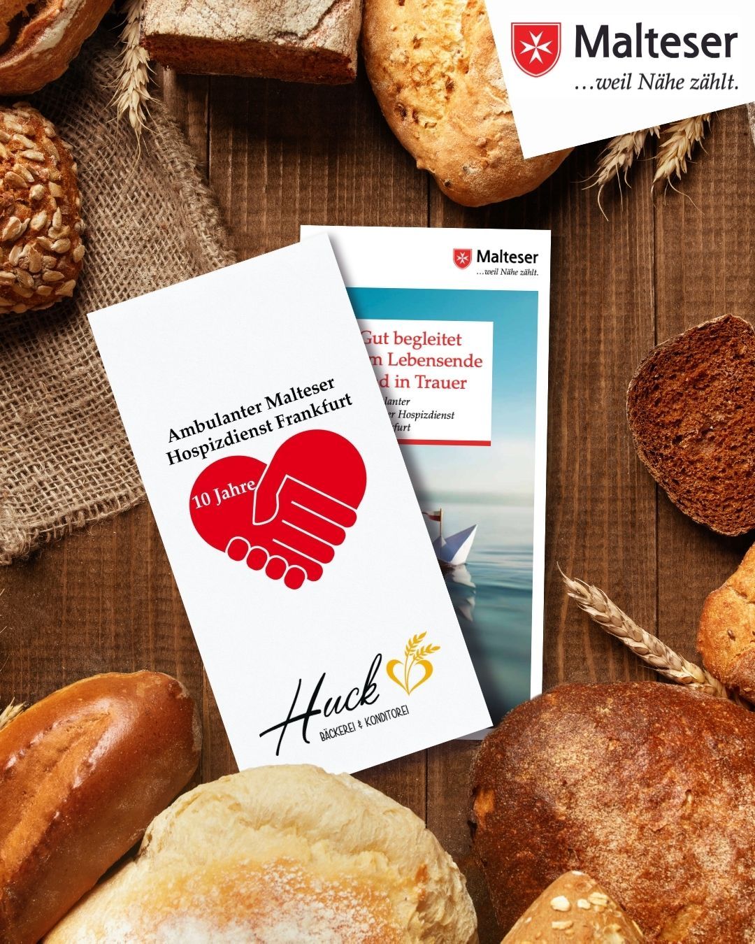 Ein besonderes Zeichen zum Jubiläum setzt die Kooperation mit der Frankfurter Traditionsbäckerei Huck. In zahlreichen Filialen in Frankfurt finden Kundinnen und Kunden in den kommenden Wochen Informationsflyer und Aufsteller, die auf das Angebot des Hospizdienstes aufmerksam machen. Die Idee: Hospizarbeit sichtbar machen – dort, wo das Leben stattfindet. Denn Themen wie Sterben, Tod und Trauer werden im Alltag oft verdrängt. Der Weg zur Bäckerei hingegen ist für viele ein fester Bestandteil des täglichen Lebens. Umso wertvoller ist es, wenn dort ein Raum entsteht für Information, Begegnung und Solidarität.
