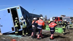 Für die Feuerwehren galt es, die verletzten Insassen des Busses möglichst schnell und schonen zu befreien, um sie zur weiteren Behandlung an den Rettungsdienst zu übergeben. Hierzu mussten sich die Einsatzkräfte erst mehrere Zugänge ins innere des umgestürzten Busses schaffen. Darüber hinaus galt es, die Einsatzstelle und den Bus zu sichern, auslaufende Betriebsstoffe zu binden und den Brandschutz sicher zu stellen.