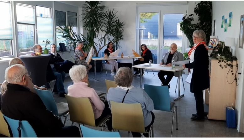 Zum Tag der offenen Tür kamen viele Besucherinnen und Besucher. Daniela Kodweiß berichtete von den Anfängen des Cafés im Oktober 2020. Sie erinnerte sich an die Herausforderungen und die schönen Momente, die das Café geprägt haben. Besonders bewegend sei es immer, wenn die Gäste von sich erzählen: „Wir dürfen teilhaben an ihrem Leben und ihren Erinnerungen. Das gemeinsame Lachen, Singen und die Gemeinschaft tun einfach gut.“ Dem engagierten Team des Cafés, das aus fünf Mitarbeitenden und einem Fahrer besteht, wurde herzlich mit Applaus und einem sichtbaren Gruß gedankt. Eine Lesung mit Autor Günther Neidinger und ein Auftritt der Veeh-Harfen®-Gruppe rundeten den Nachmittag ab.