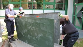 Rosenheim/Berchtesgadener Land. Die Berufliche Oberschule (FOSBOS) Rosenheim spendet den Maltesern für die Auslandshilfe in Rumänien insgesamt 36 klassische Tafeln. Diese werden mit Hilfe einer Digitalisierungsförderung von Bund und Ländern durch große digitale Medientafeln ersetzt. In einer gemeinsamen Aktion von Mitarbeitern der Firma Zosseder, ehrenamtlichen Helfern der Rosenheimer Malteser und dem Leiter der Malteser Auslandshilfe im Berchtesgadener Land, Michael Soldanski, wurden 25 der alten Tafeln samt Leitschienen bereits abgebaut und in den LKW der Hilfsorganisation verladen. 11 weitere folgen zum Ende des Schuljahres.