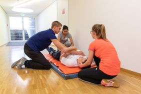 Die sportlichen Fähigkeiten der Bewerber, die in ihrem künftigen Berufswunsch immer wieder in die Situation kommen werden Menschen nur zu zweit mit ihrem Teampartner zu tragen, wurden nach einem reichhaltigen Mittagessen vom Hof ALHENA geprüft. Neben Ausdauer und Kraft waren aber auch in diesen Stationen die eigene Motivation und der Ehrgeiz der Bewerber sowie Teamgeist zur Bewältigung der aufgaben gefragt.