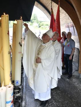 Der deutschsprachige Pfarrer Holzamer aus Lourdes begrüßte unsere Pilgerschar, bevor Weihbischof Hubert Berenbrinker die Messe zelebrierte.